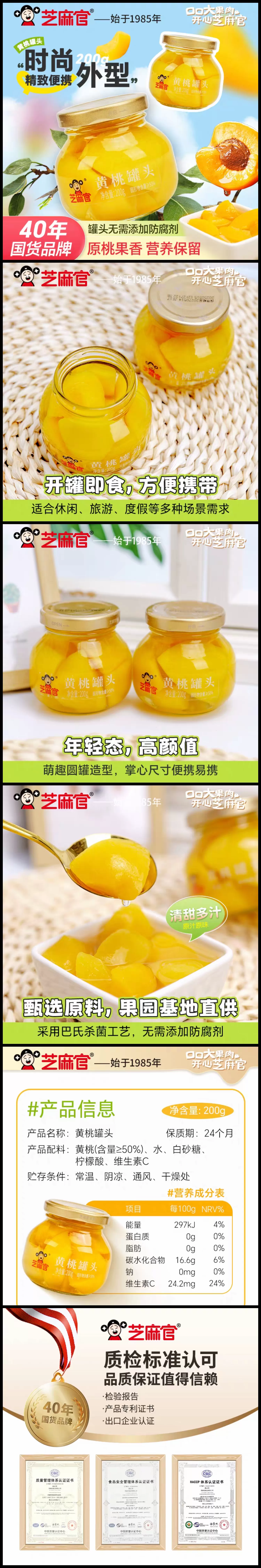 这款芝麻官黄桃罐头是40 年老国货的经典之作,凭借萌趣便携的造型与无添加的健康工艺,成为日常休闲、出行的优质水果零食,保留了黄桃原生果香与营养。