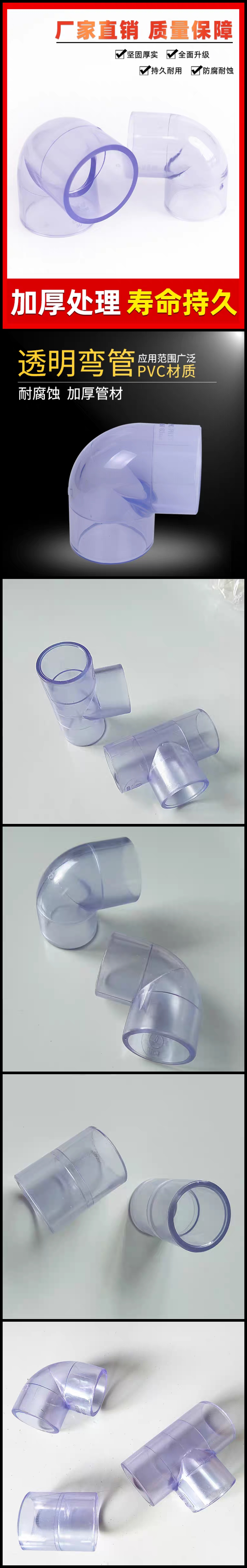 这款透明 PVC 管件是管道系统的优质连接件,凭借透明可视 + 加厚耐用的特性,广泛适配需要观察管内流体的场景,是给排水、实验室管路等场景的理想选择。