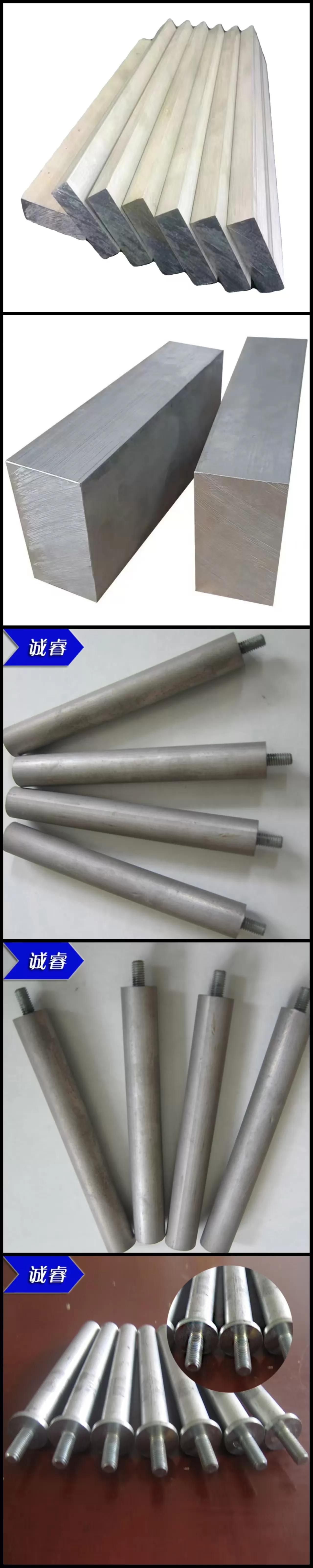 - | 铝合金牺牲阳极 | 电流效率高、重量轻、性价比高 | 海水、油井套管、海洋工程、船舶 |
