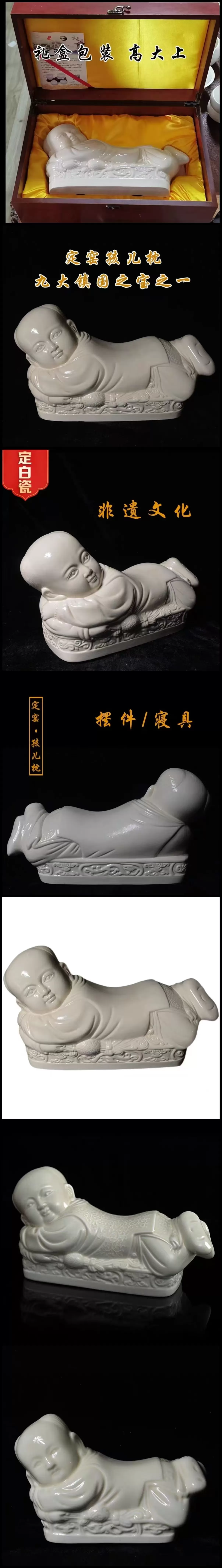 这是宋代定窑白瓷孩儿枕的复刻工艺品,是中国古代瓷器的巅峰之作、九大镇国之宝之一,同时也是国家级非物质文化遗产定窑烧制技艺的代表作品。
