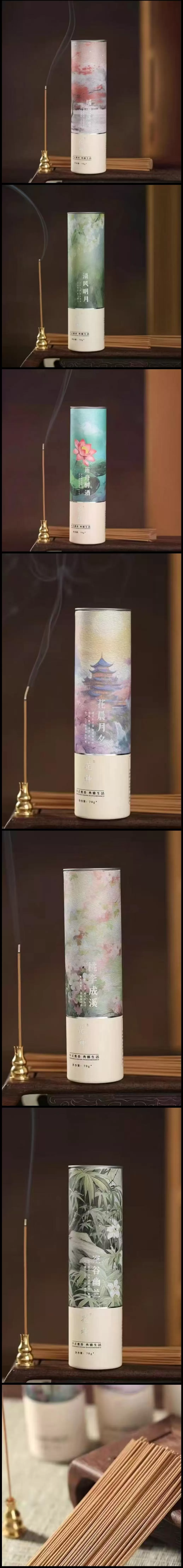 系列规格与意境这套线香采用圆筒包装,单筒净含量约7g,包含 6 款经典花神主题,每款都有独特的国风插画与香气: