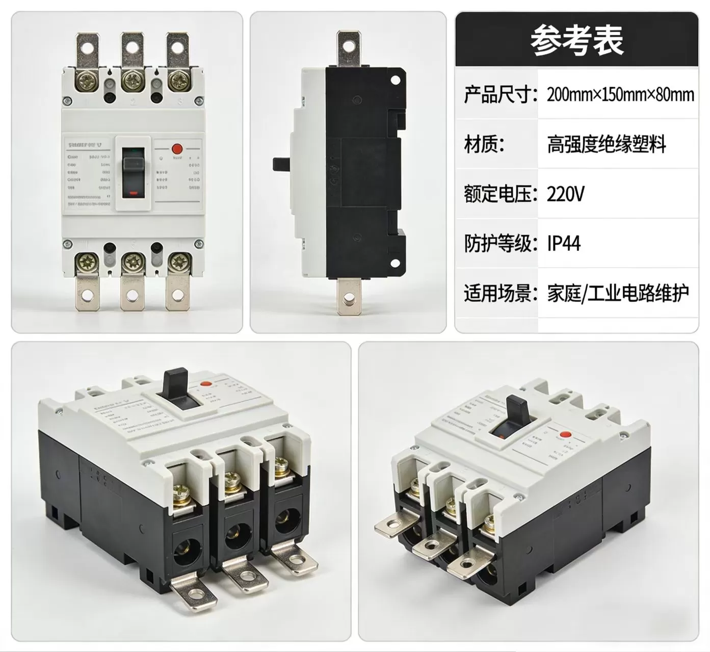 | 产品尺寸 | 200mm×150mm×80mm | 标准塑壳尺寸,适配配电柜 / 配电箱安装 |