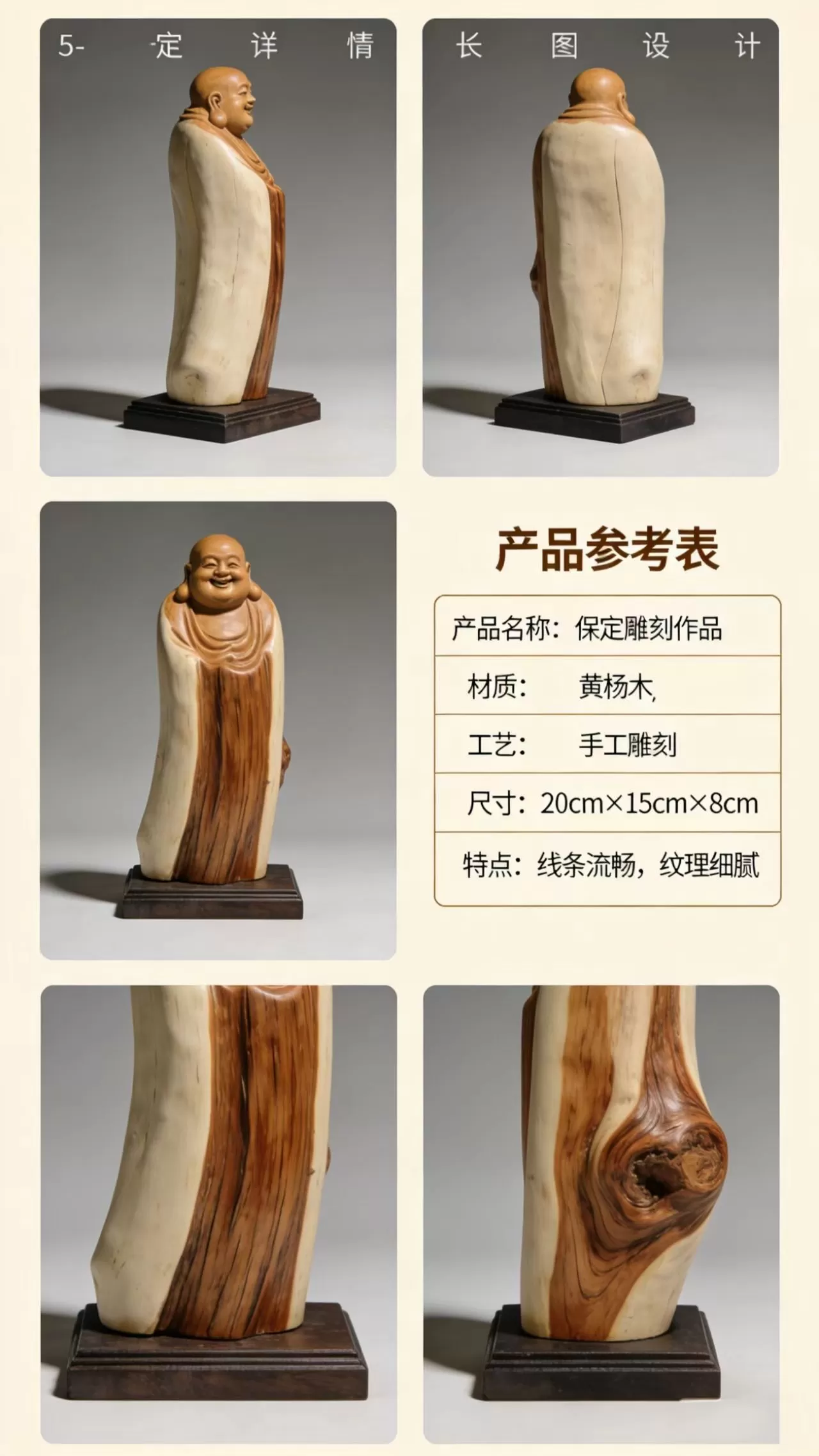 - 弥勒佛象征吉祥如意、招财纳福,是中式传统木雕中最经典的吉祥题材之一;