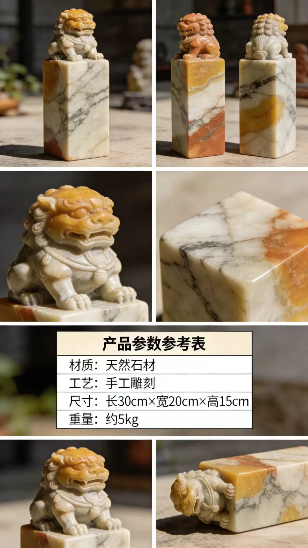 产品名称:天然石材手工雕刻狮子印章摆件