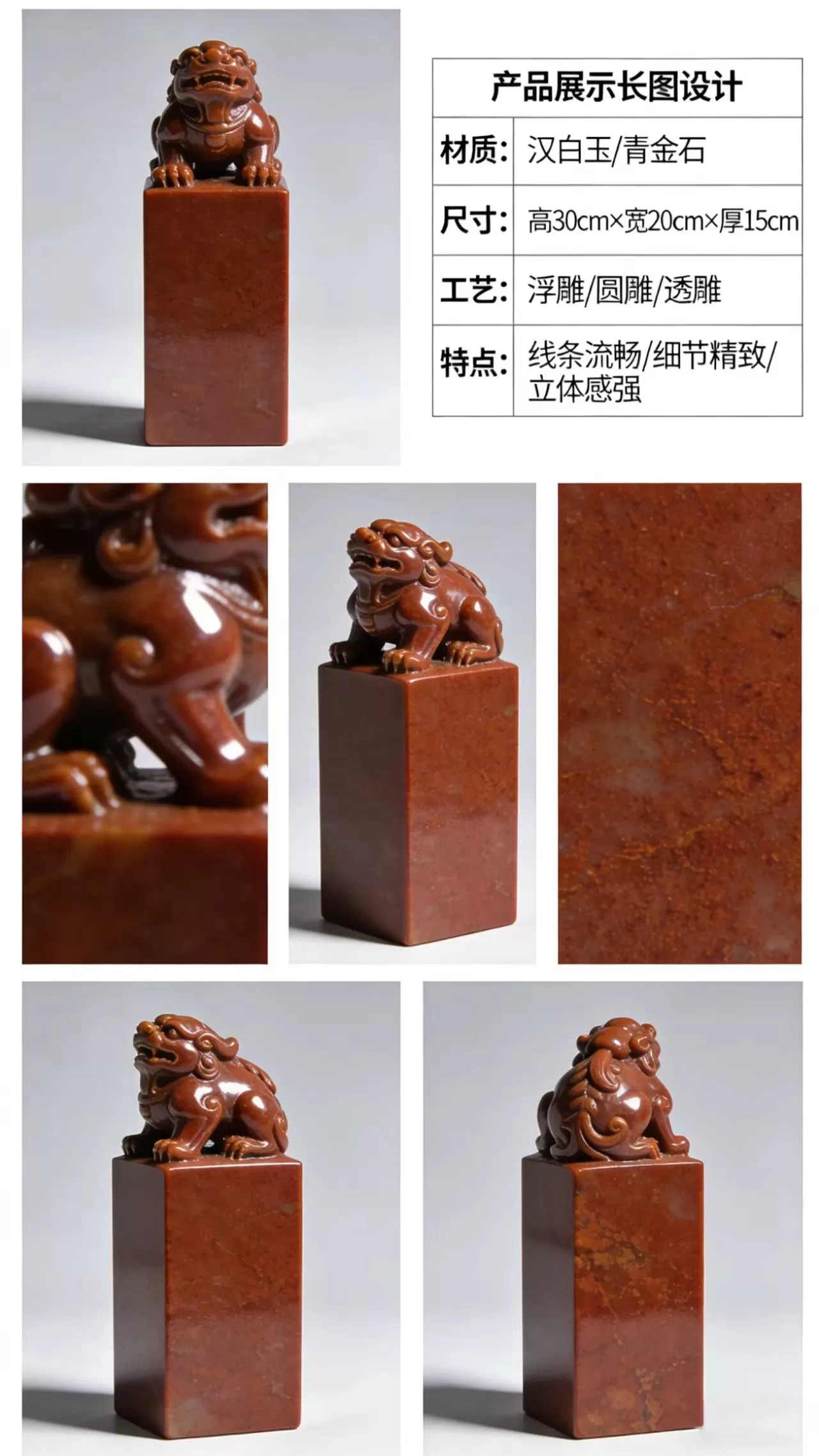 | 造型 | 方章 + 瑞兽钮(貔貅 / 狮子款) |