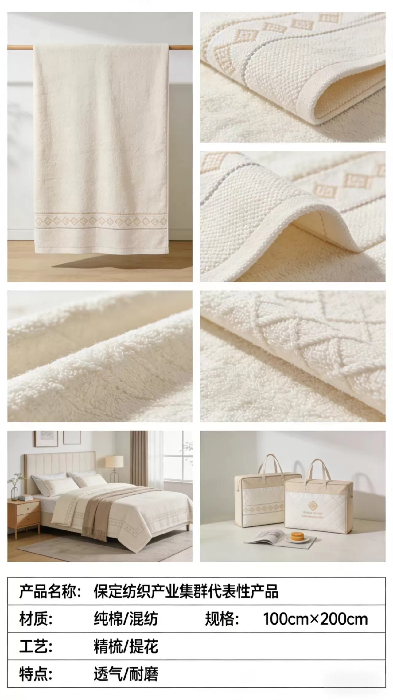 这是保定纺织产业集群出品的高端精梳提花纯棉浴巾(也可作盖毯 / 床品),主打透气耐磨、亲肤舒适,是家居洗护、礼品套装的高品质选择。