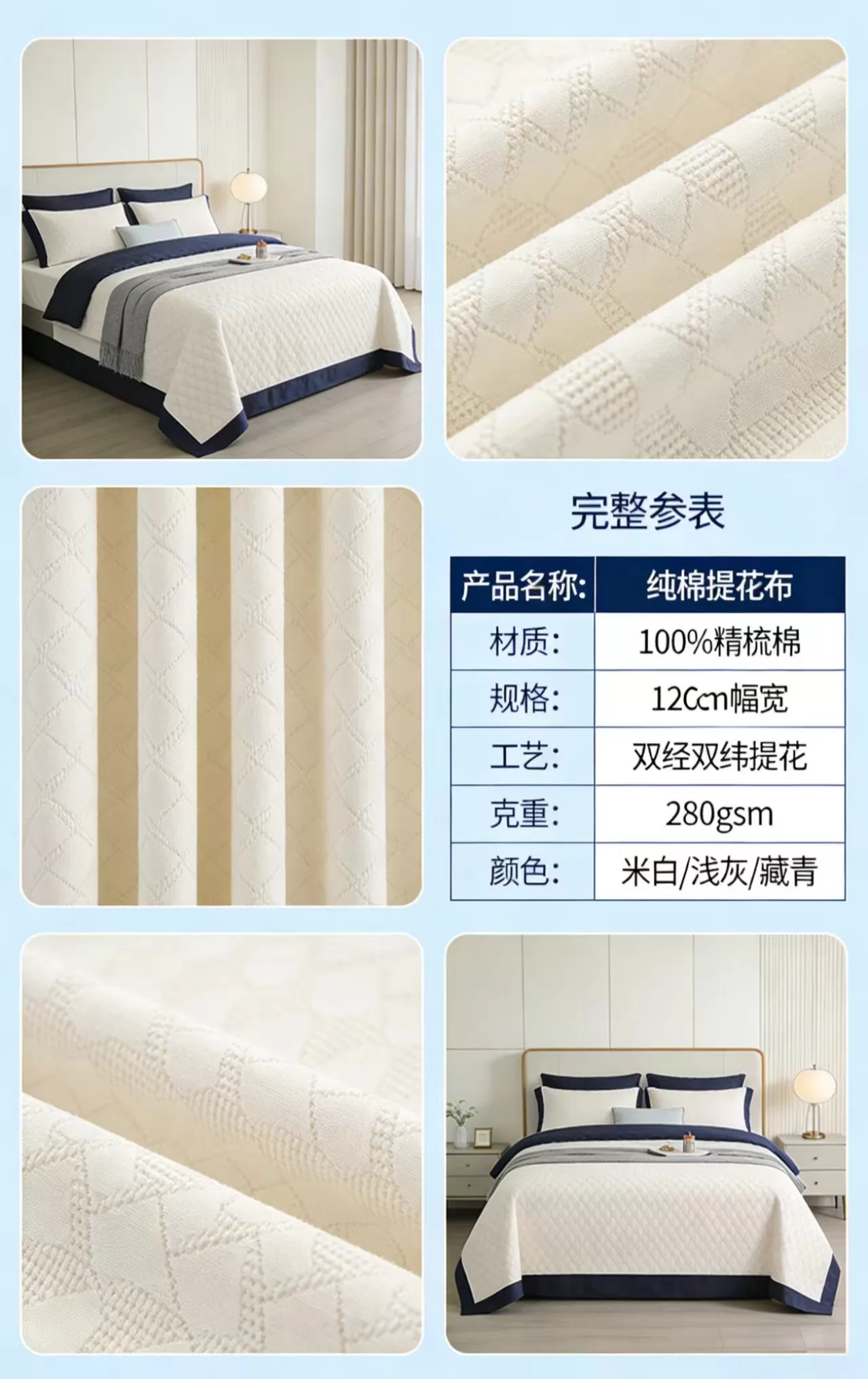 | 克重 | 280g/㎡(厚实质感,适合床品) |