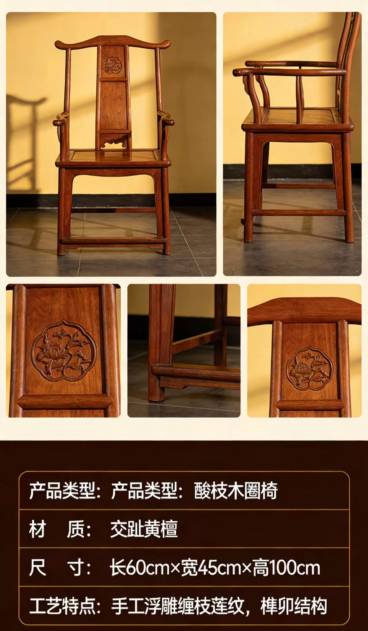 | 产品类型 | 酸枝木圈椅 / 官帽椅 |