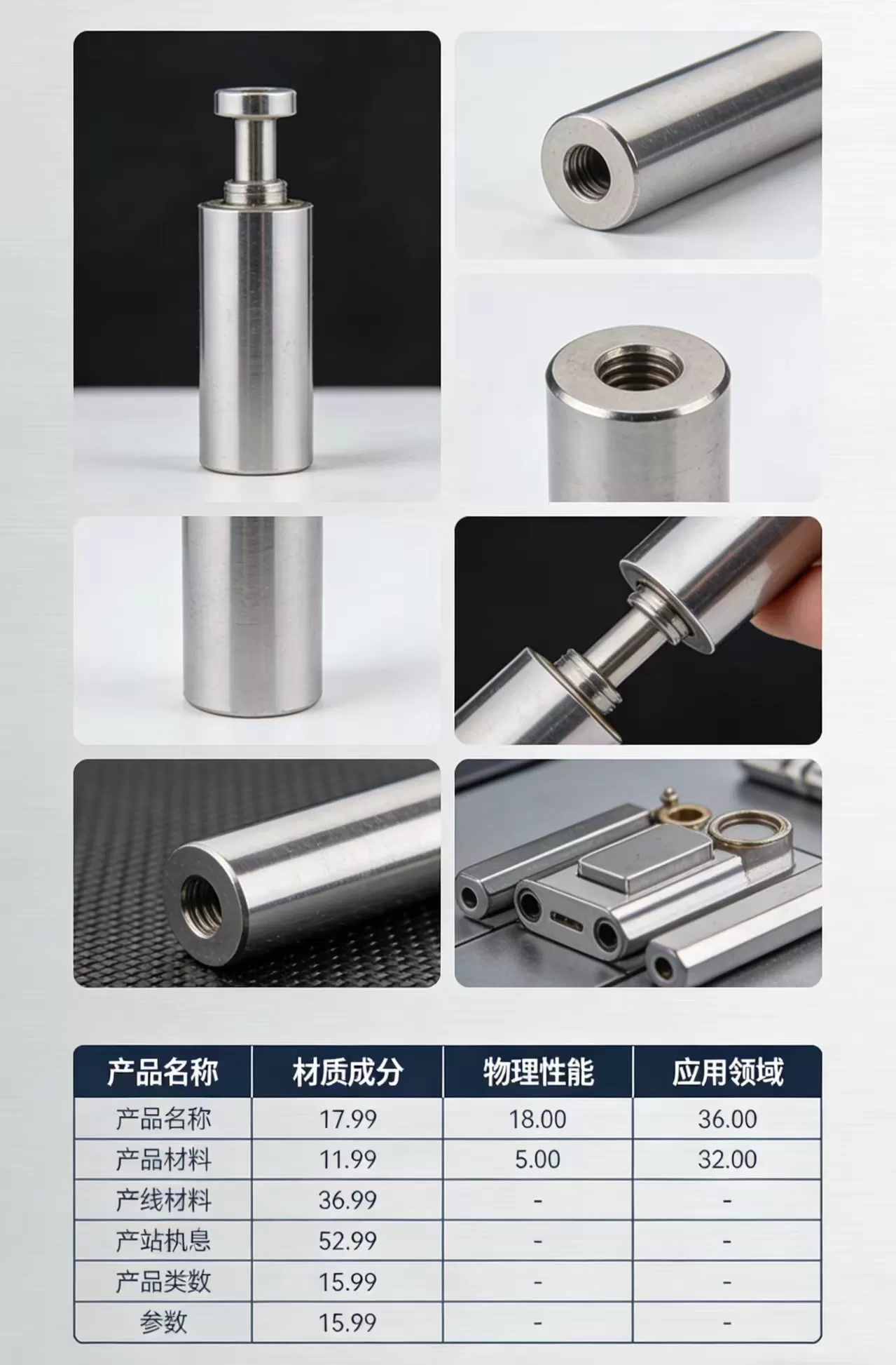 这是一款不锈钢材质的伸缩式精密金属轴 / 柱塞,属于高端精密机械零件,采用优质不锈钢打造,表面光洁度高、加工精度高,适用于精密机械、自动化设备等领域。