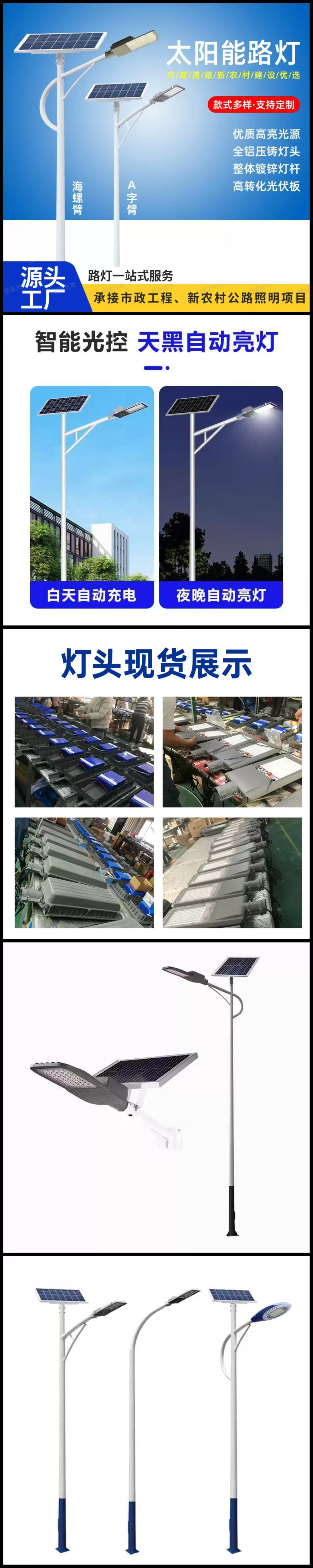 太阳能路灯是一款采用高转化光伏板与全铝压铸灯头精造而成的户外道路照明设备。专为追求绿色节能、注重市政道路与新农村建设照明需求的用户设计,通过智能光控与整体镀锌灯杆工艺,实现了 0 电费照明与长效耐用的完美平衡。产品达到户外道路照明标准,执行 GB/T 23110 等相关标准,从原料到成品守护市政道路、乡村公路等场景使用安全。