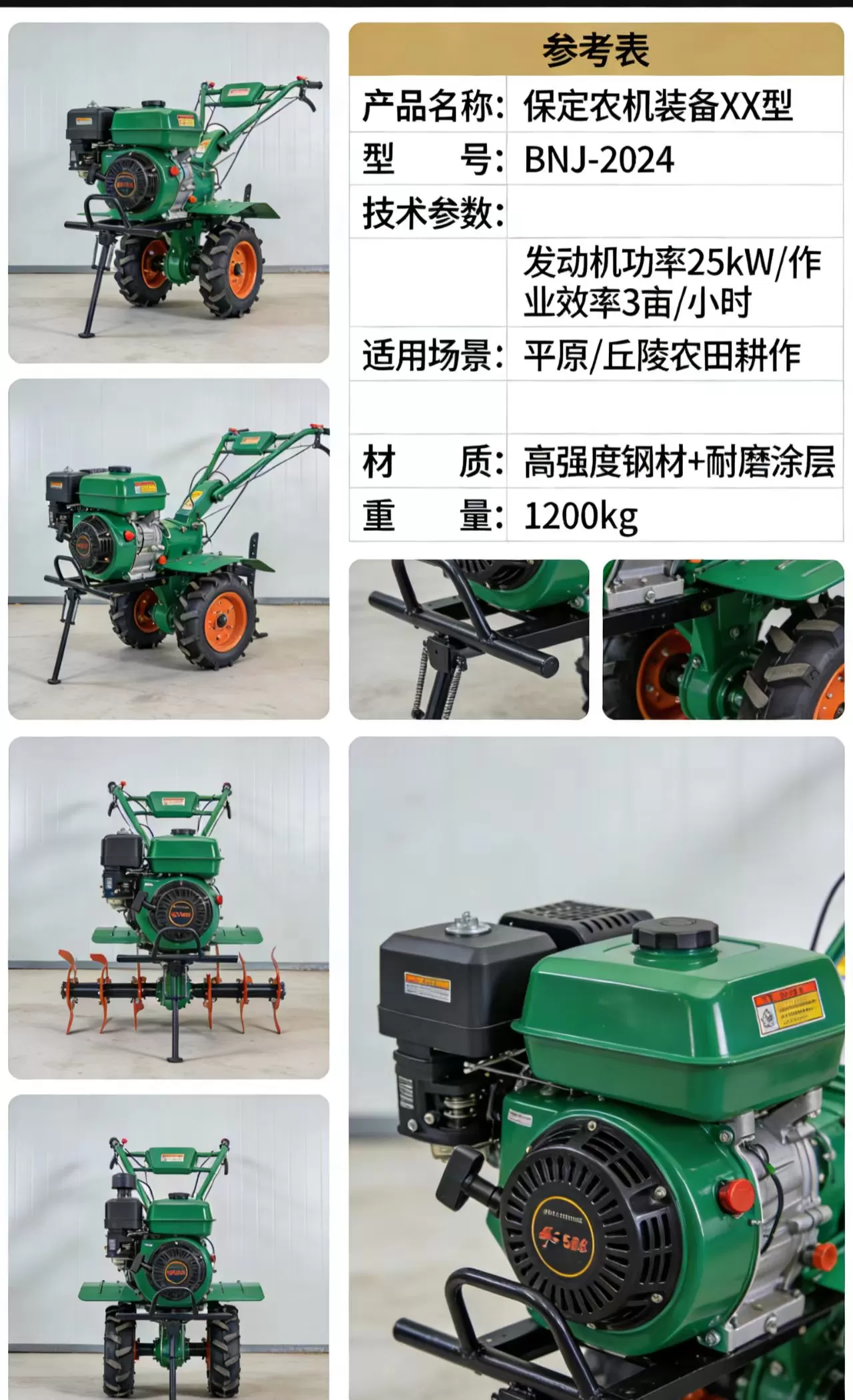 | 产品名称 | 保定农机装备 XX 型(BNJ-2024 微耕机) | |