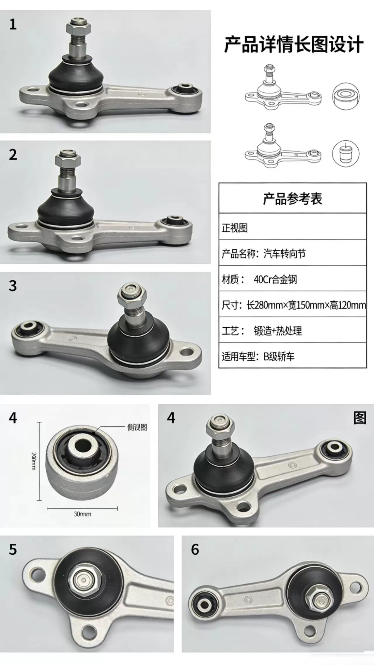 这是一款适配 B 级轿车的悬挂球头(转向节)总成,是汽车底盘悬挂系统的核心安全部件,用于连接悬挂摆臂与转向节,实现车轮转向与减震缓冲,保障转向精准与行驶安全。