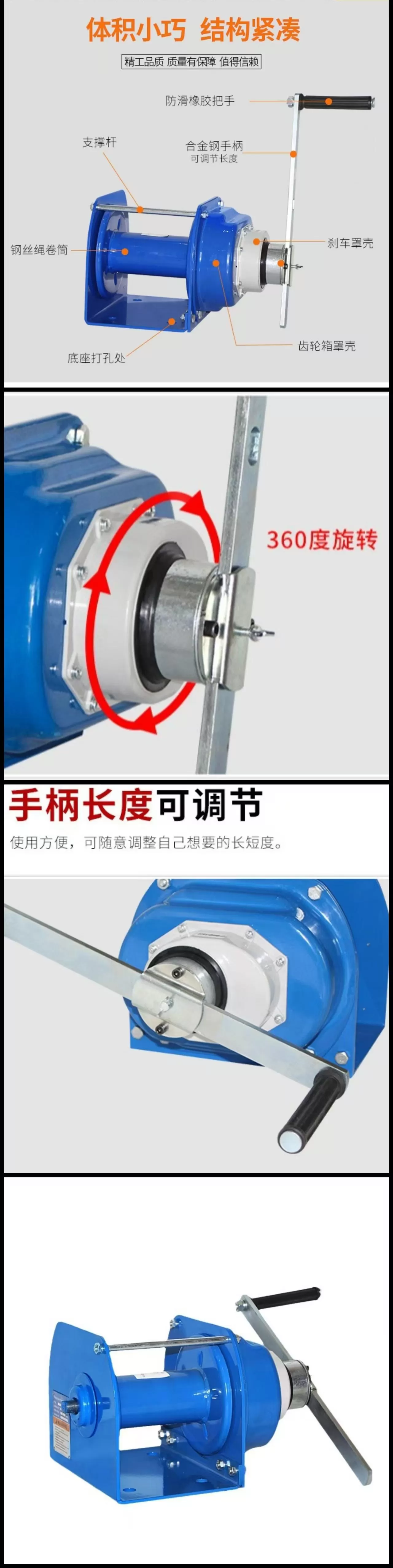 | 核心结构 | 双向自锁棘轮机构、淬火齿轮传动、加厚钢丝绳卷筒 |
