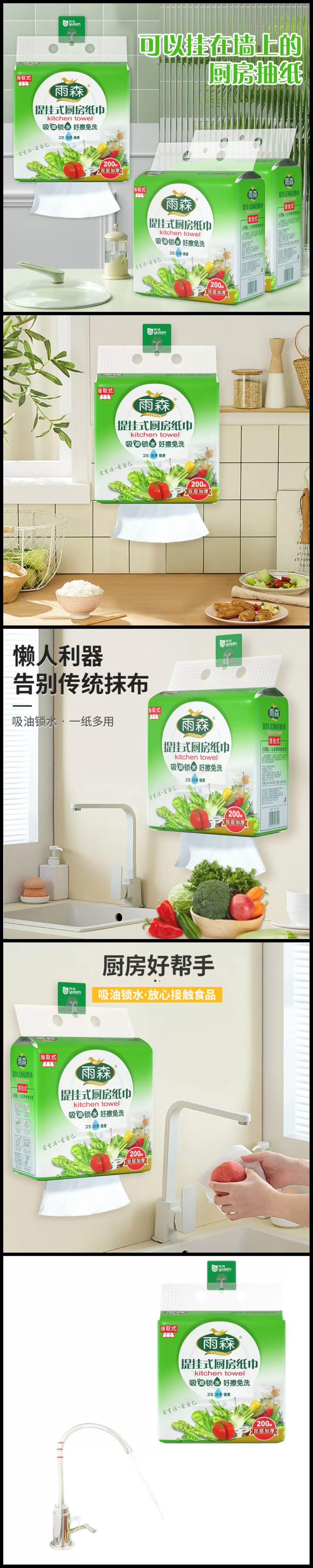雨森悬挂式厨房抽纸是一款专为厨房场景设计的清洁用纸,采用优质原生木浆制作,以创新悬挂式设计与强效吸油锁水性能,轻松解决厨房清洁难题,告别传统抹布的繁琐与不卫生,是厨房高效清洁的得力助手。