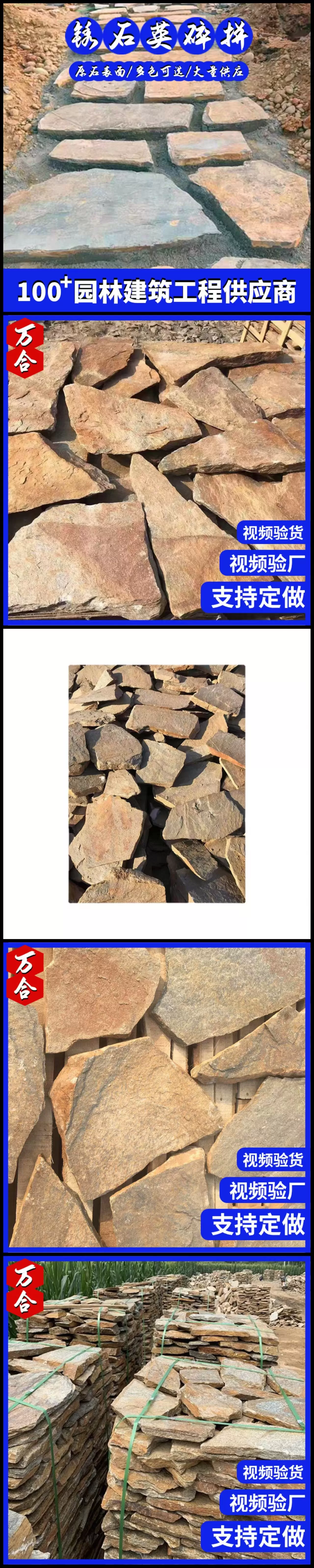 这款锈石英碎拼石材,以天然锈石英岩为原料,经自然风化与手工劈切成型,是融合自然野趣与复古美学的高端园林景观石材,广泛应用于庭院、步道与别墅景观工程。